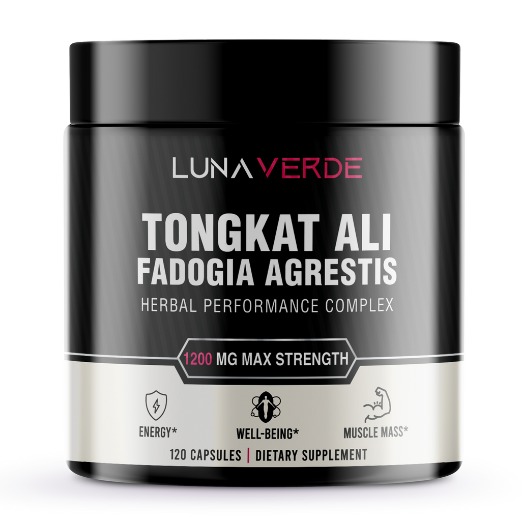 LunaVerde Tongkat Ali and Fadogia Agrestis supplement combines two powerful herbal extracts to support energy, vitality, and overall well-being. With 1200 mg per serving, this formula is designed to naturally boost healthy T levels, enhance physical performance, and promote muscle growth and recovery. Tongkat Ali, known for its adaptogenic properties, helps to reduce stress while improving stamina and libido. Fadogia Agrestis complements these benefits by further supporting endurance and wellness. Together, these potent ingredients make LunaVerde's supplement an excellent choice for those looking to optimize their strength, energy, and overall health.